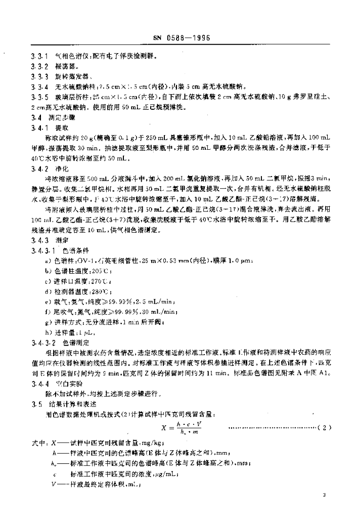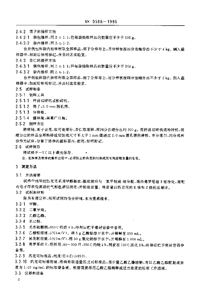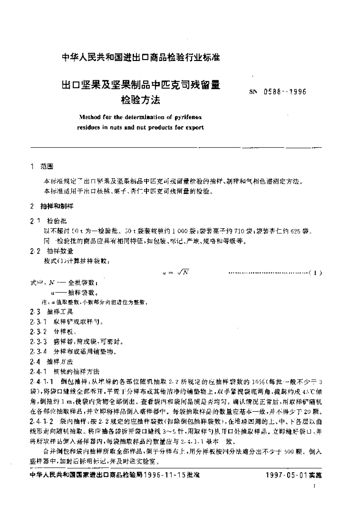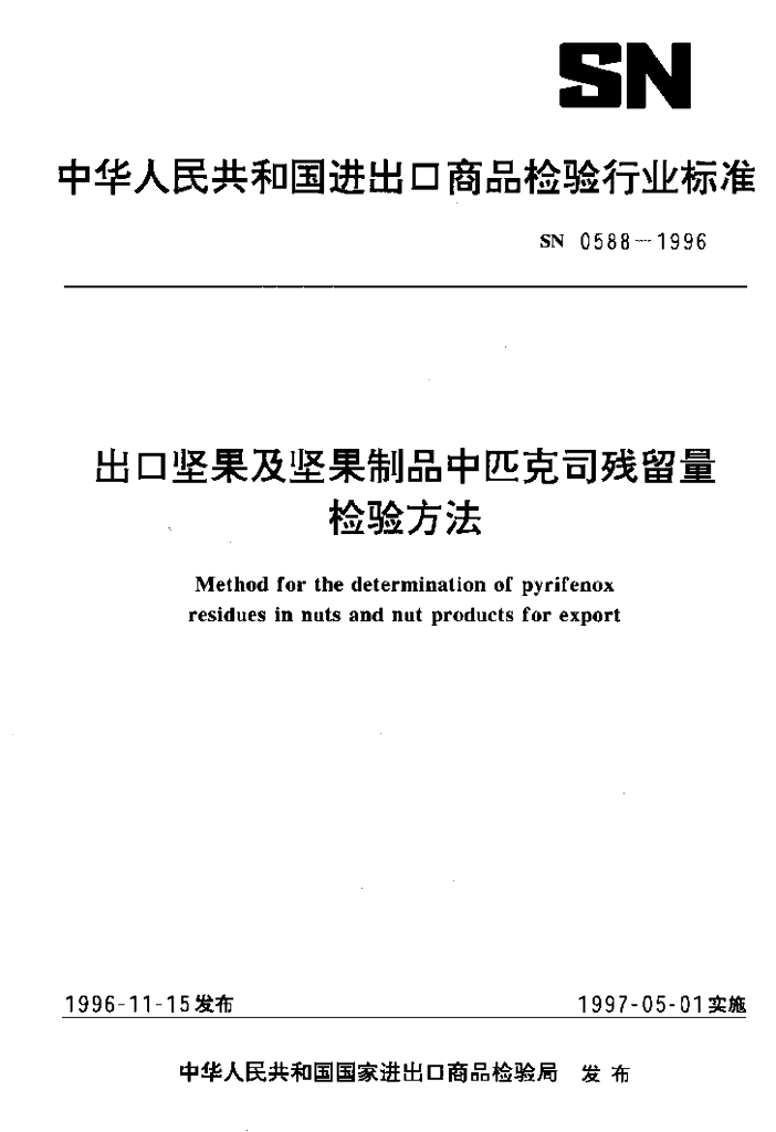 SN 0588-1996 出口坚果及坚果制品中匹克司残留量检验方法