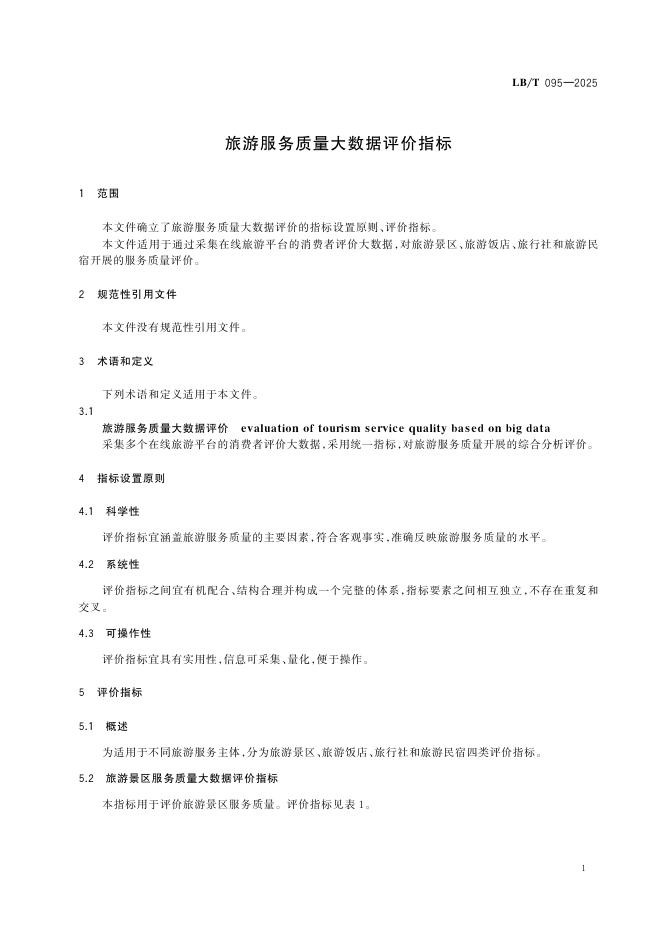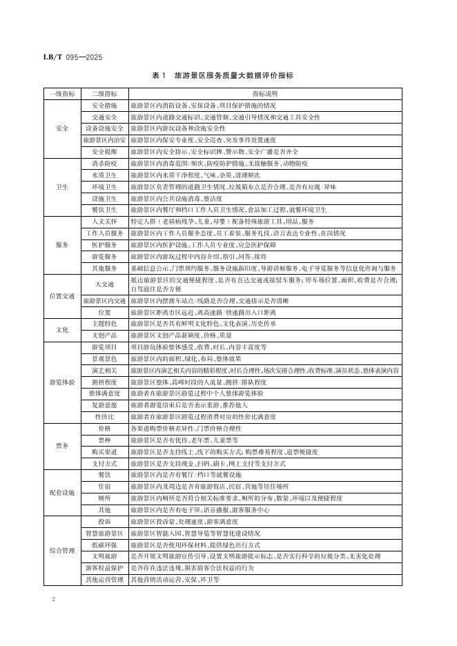 LB/T 095-2025 旅游服务质量大数据评价指标