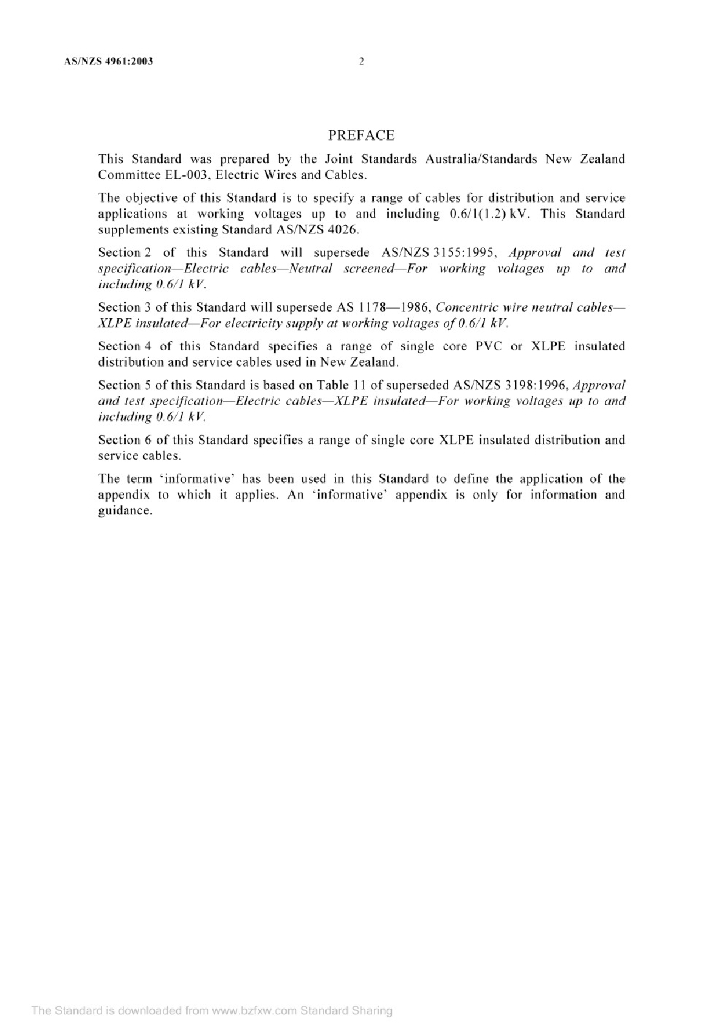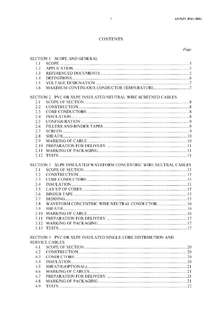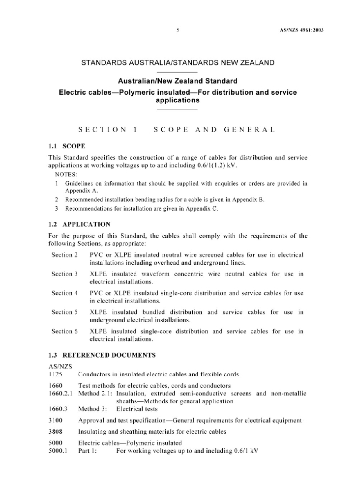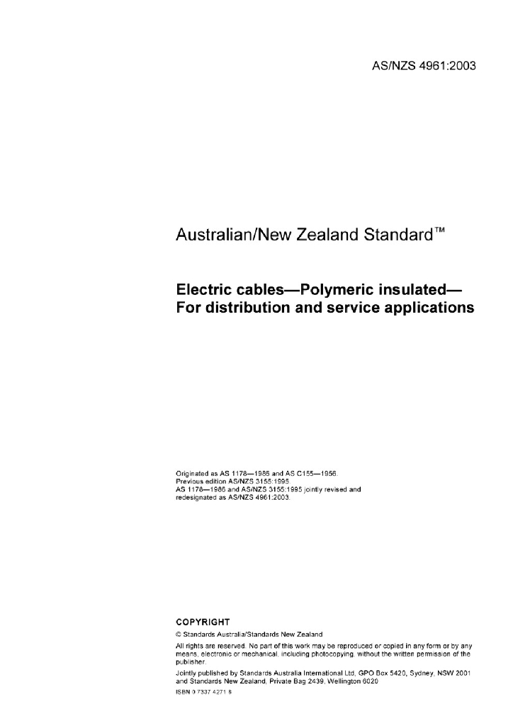 AS/NZS 4961:2003 应用于配电和伺服的聚合物绝缘电缆