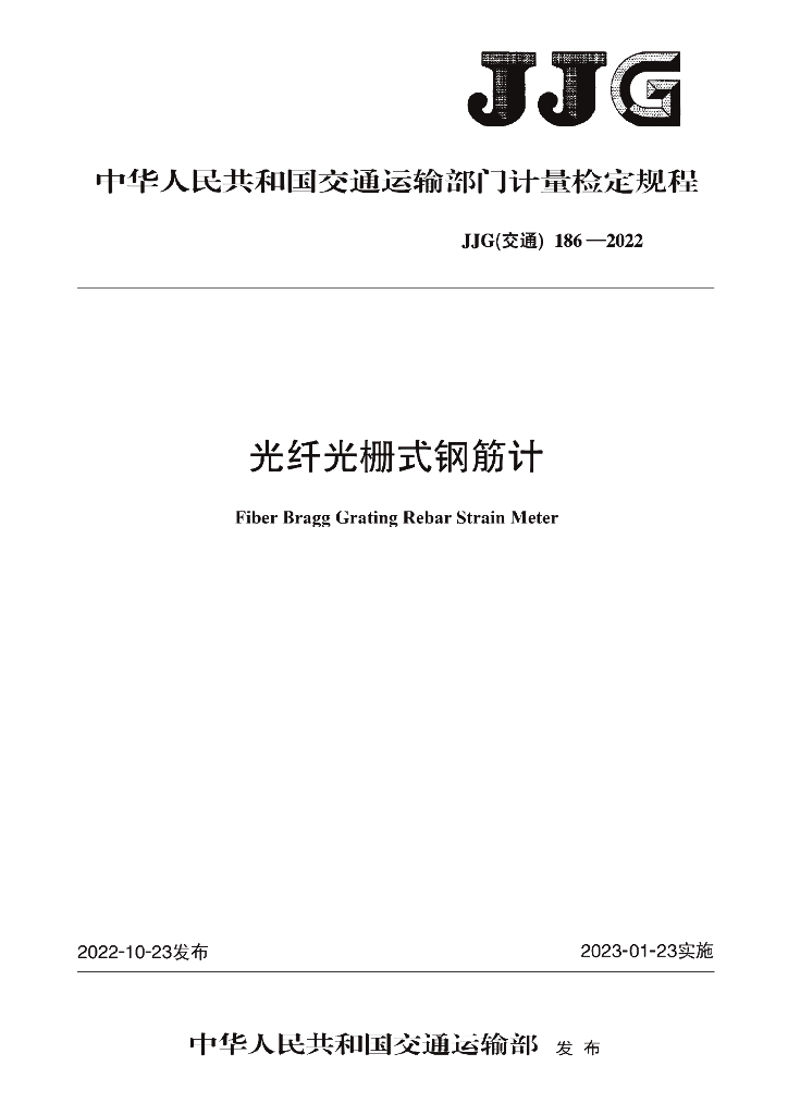 JJG(交通)186-2022 光纤光栅式钢筋计