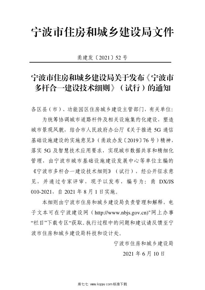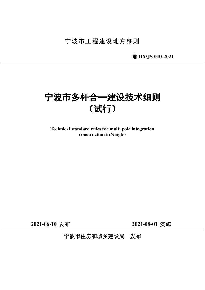 甬DX/JS 010-2021 宁波市多杆合一建设技术细则(试行)