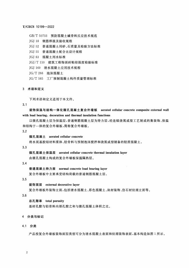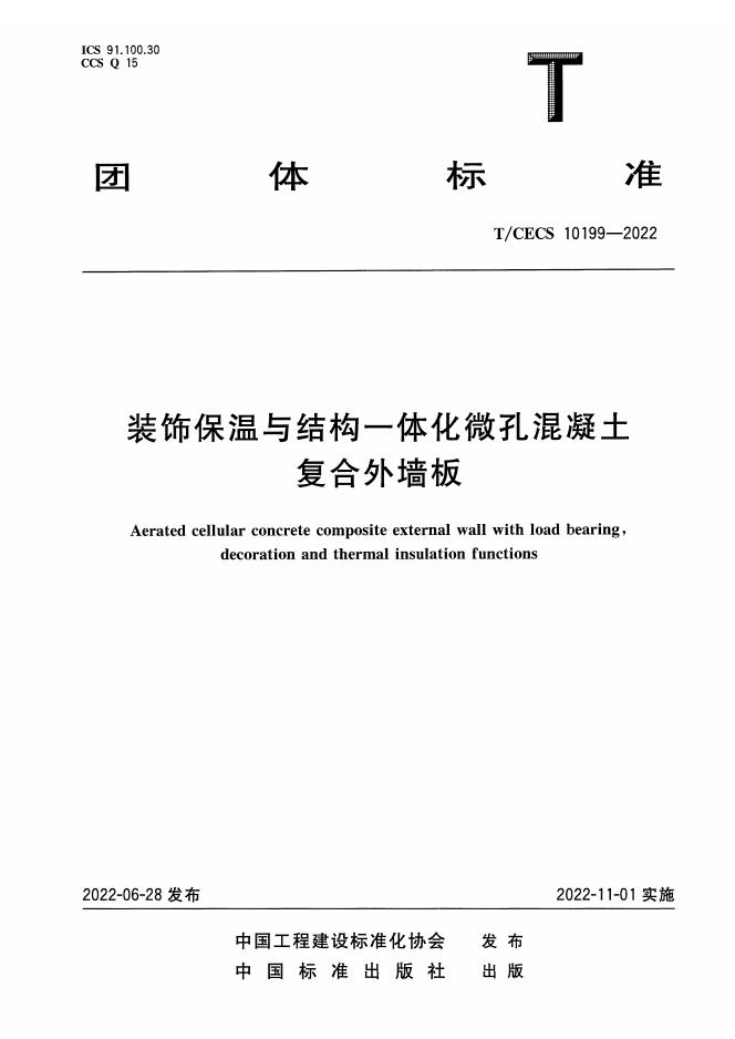T/CECS 10199-2022 装饰保温与结构一体化微孔混凝土复合外墙板