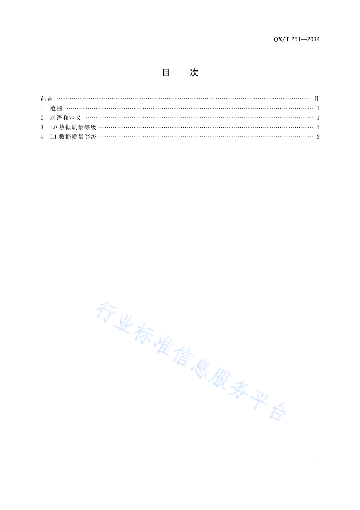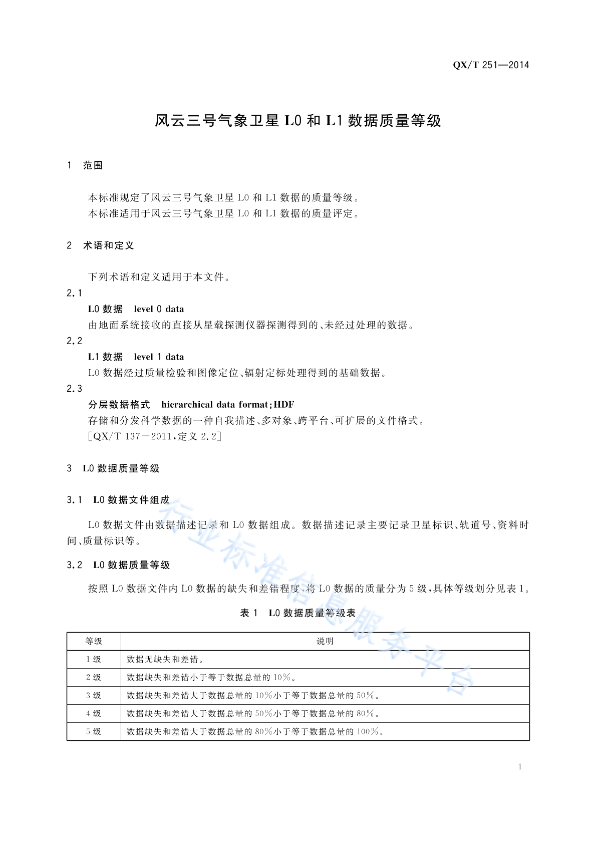 QX/T 251-2014 风云三号气象卫星L0和L1数据质量等级