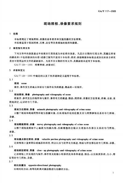 GA/T 117-1995 现场照相、录像要求规则