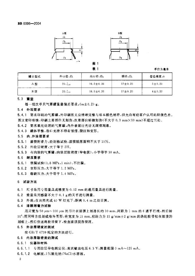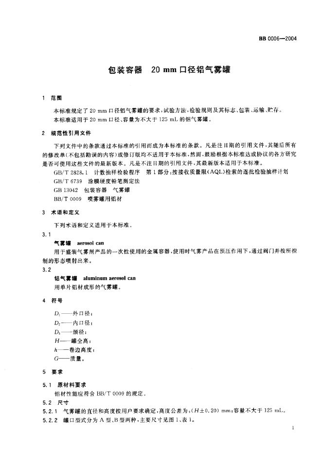 BB 0006-1995 包装容器20MM口径喷雾罐