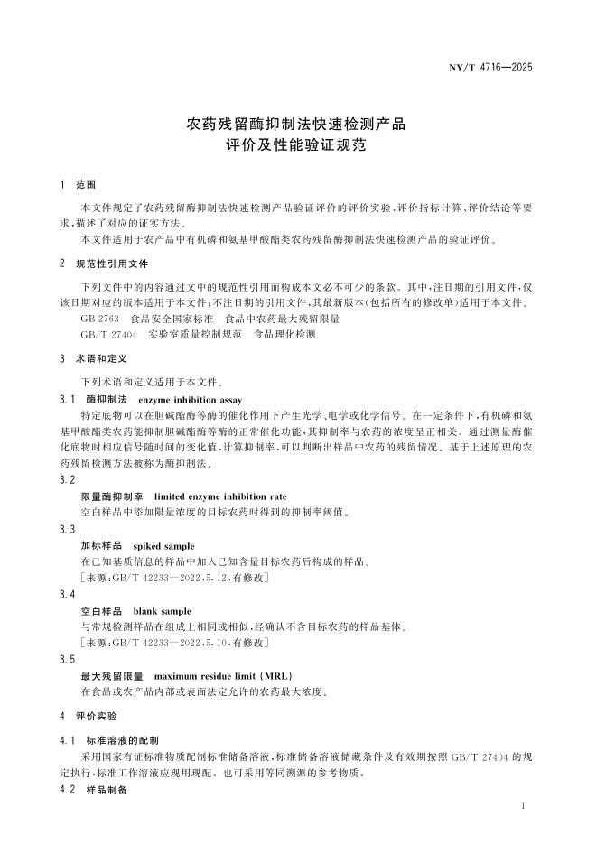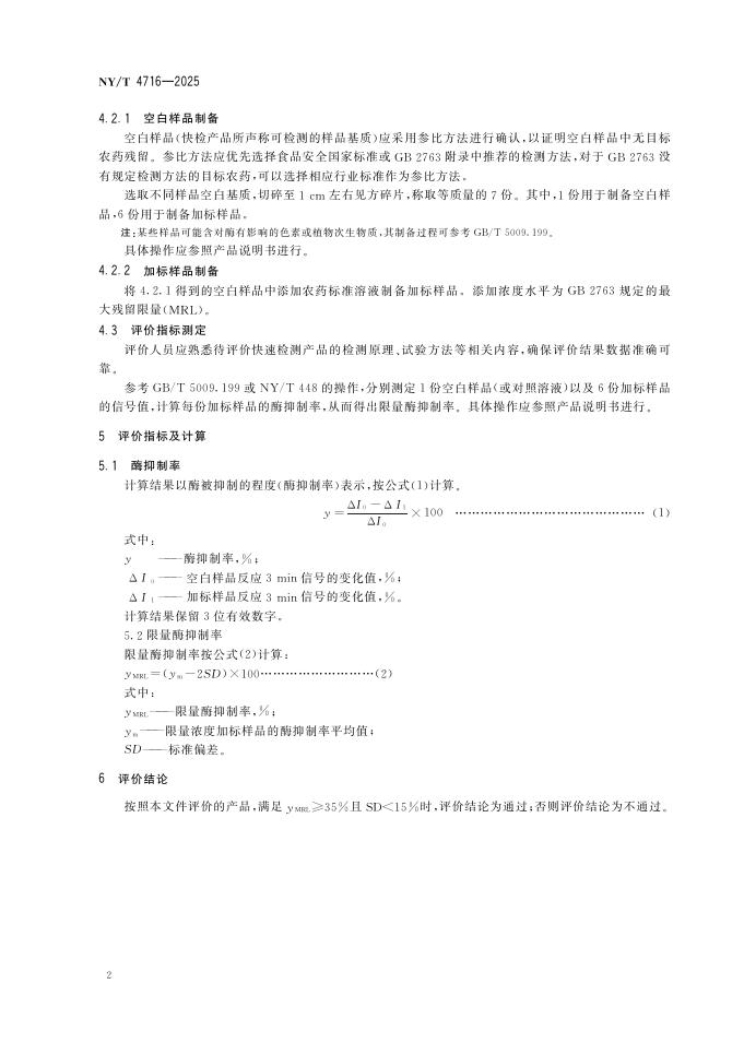 NY/T 4716-2025 农药残留酶抑制法快速检测产品评价及性能验证规范