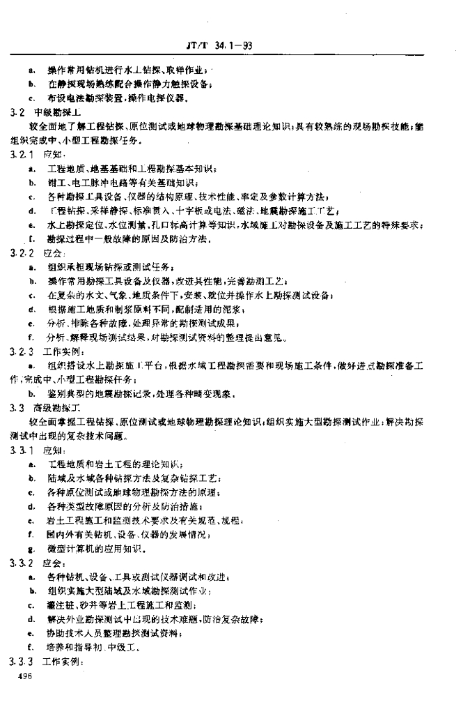 JT/T 34.1-1993 交通行业工人技术等级标准交通勘测勘探工