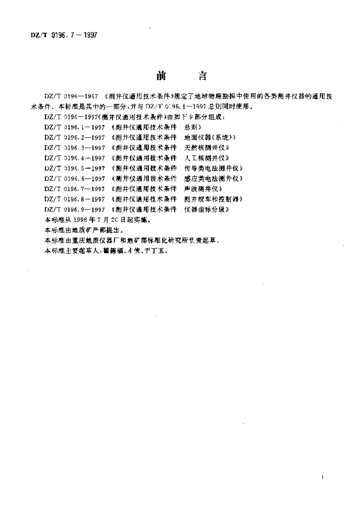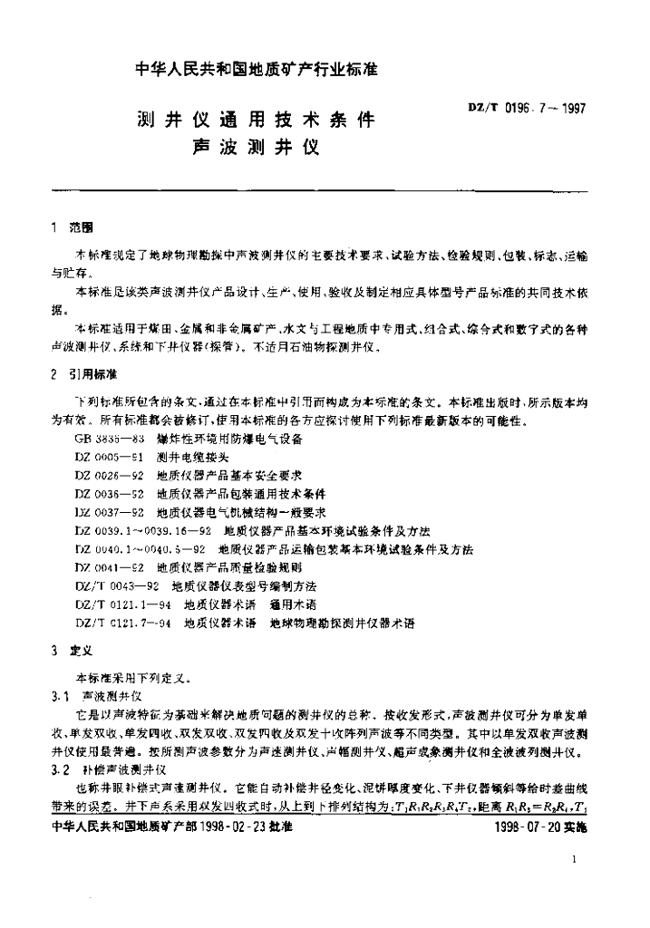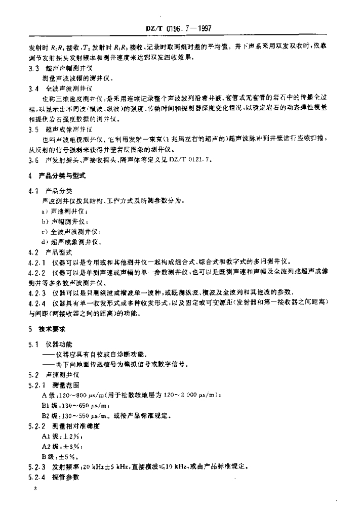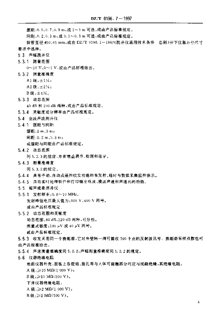 DZ/T 0196.7-1997 测井仪通用技术条件声波测井仪
