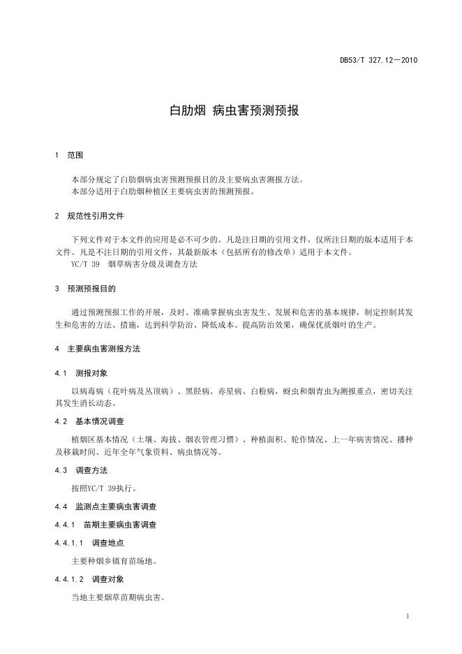 DB53/T 327.12-2010 白肋烟 病虫害预测预报