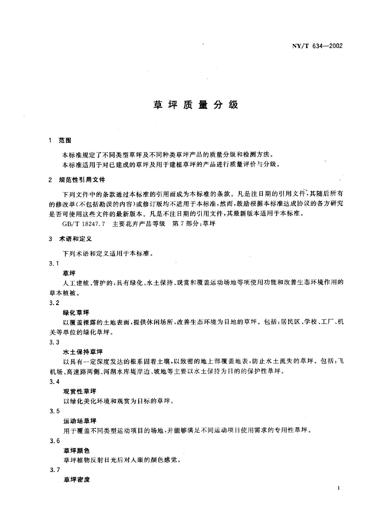 NY/T 634-2002 草坪质量分级