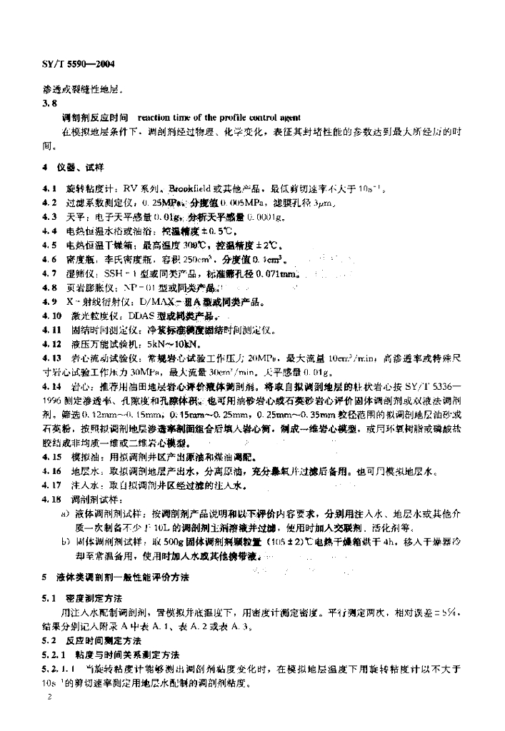 SY/T 5590-2004 调剖剂性能评价方法