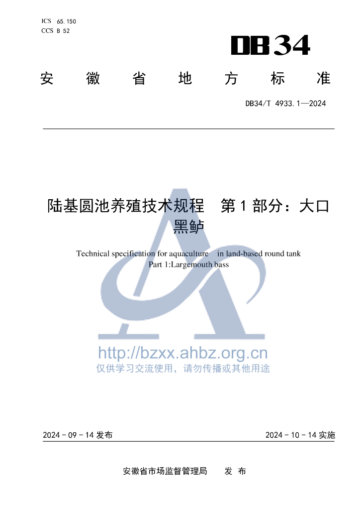 DB34/T 4933.1-2024 陆基圆池养殖技术规程 第1部分:大口黑鲈