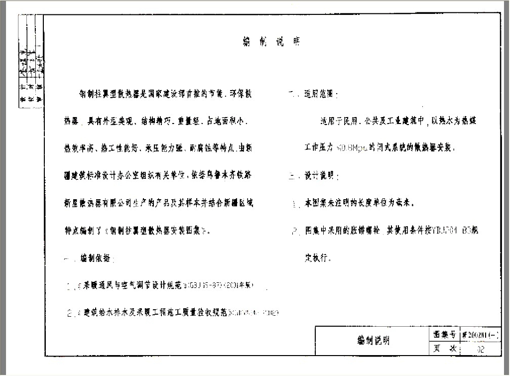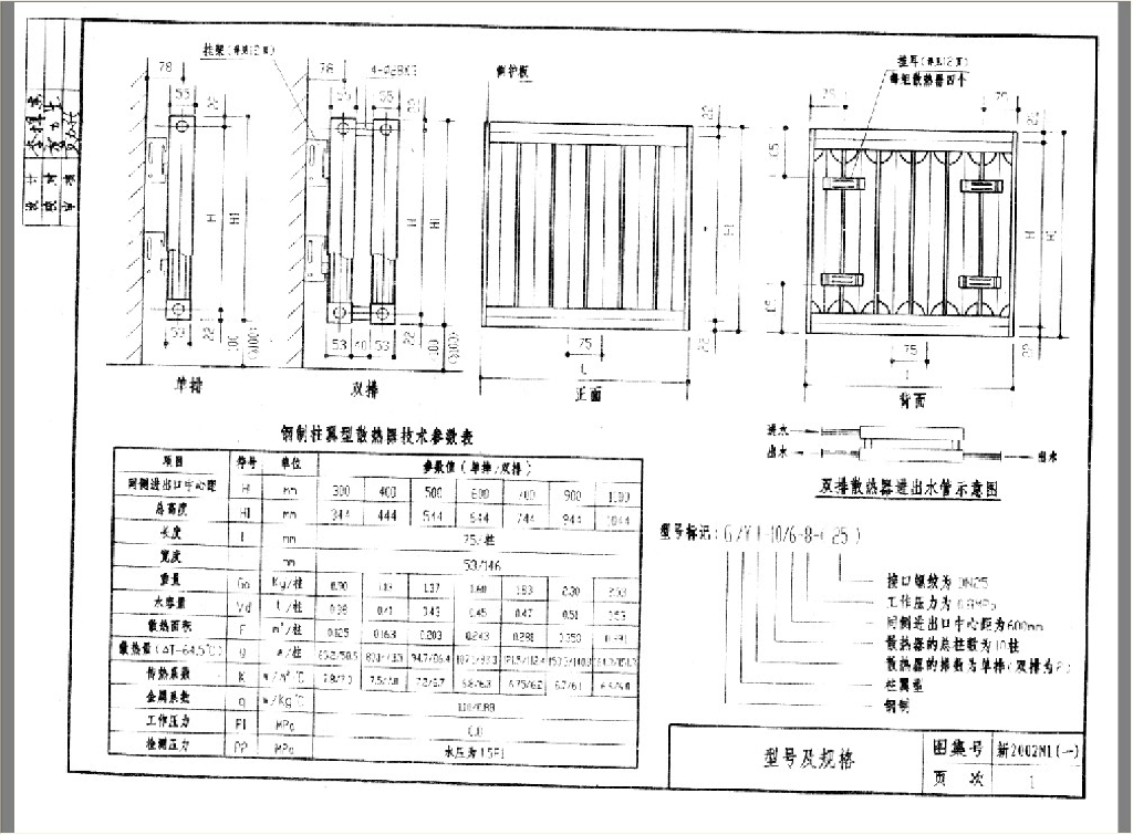 新2002N1(一) 钢制柱翼型散热器安装图集(试行)