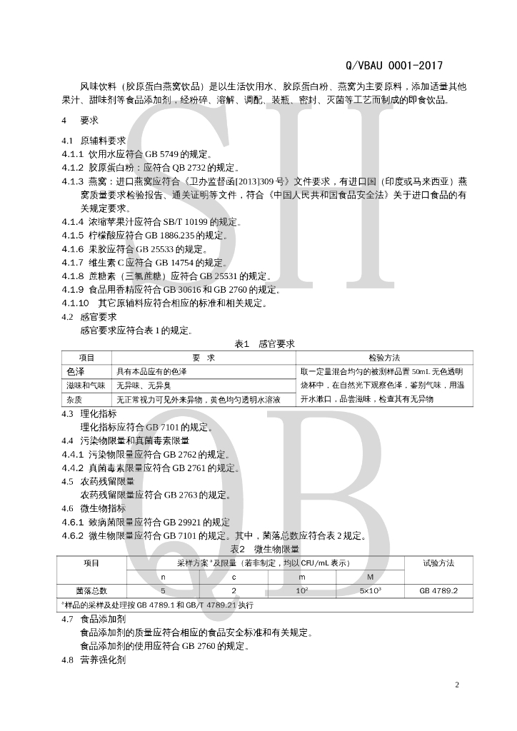 Q/VBAU 0001-2017 风味饮料(胶原蛋白燕窝饮品)