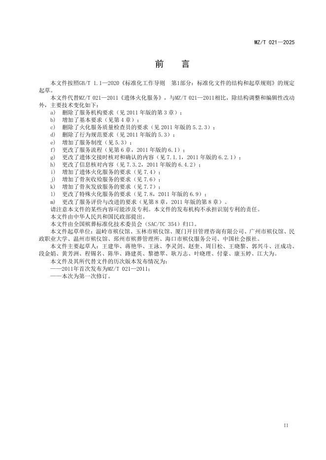 MZ/T 021-2025 遗体火化服务规范