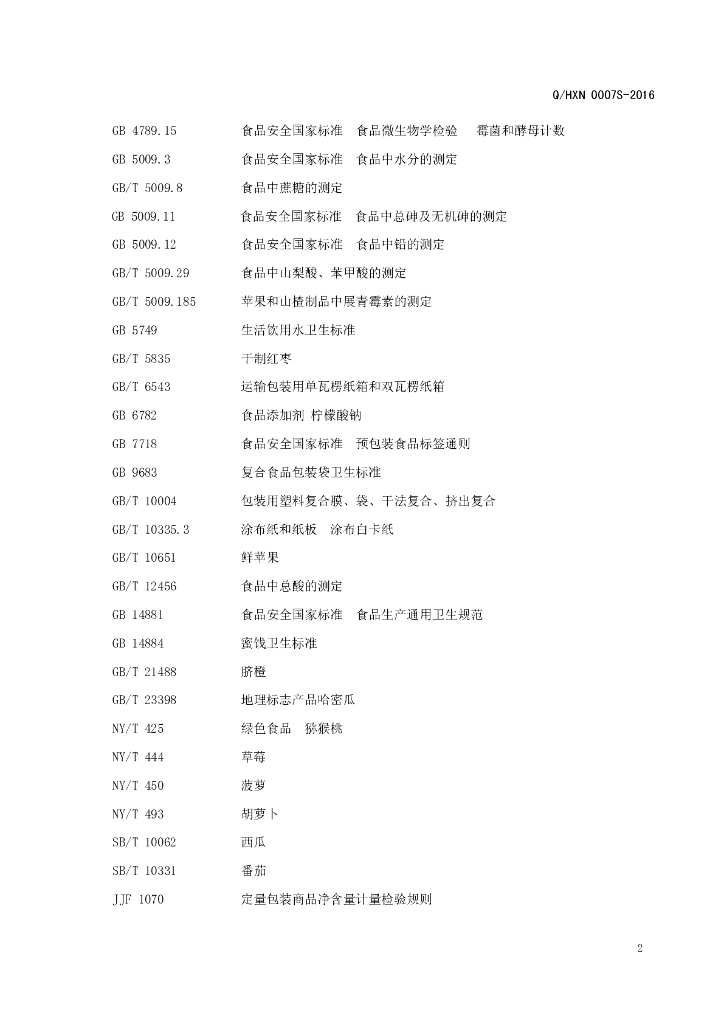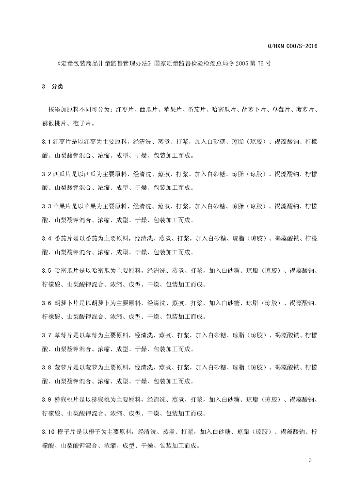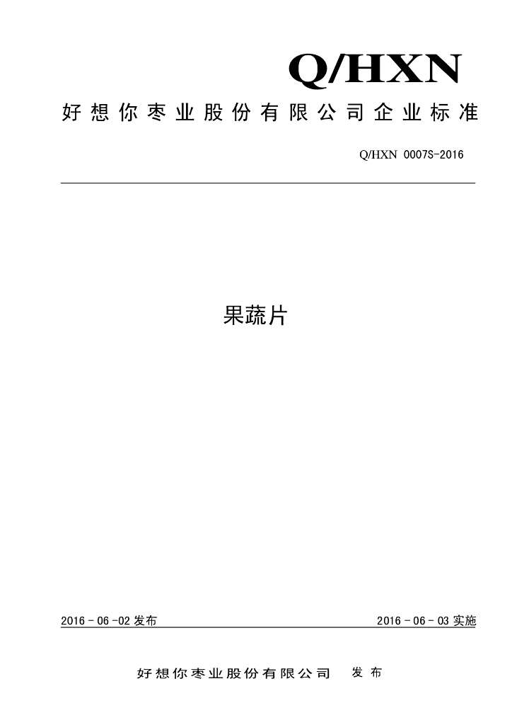 Q/HXN 0007S-2016 好想你枣业股份有限公司 果蔬片