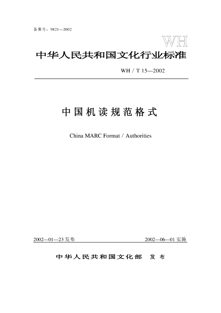 WH/T 15-2002 中国机读规范格式