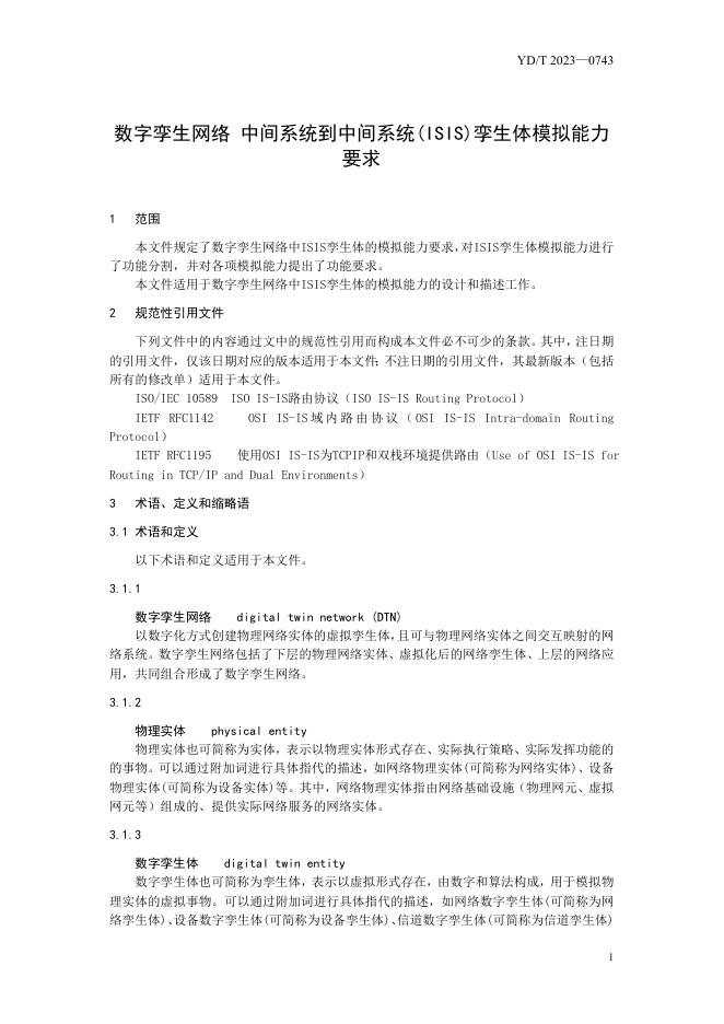 YD/T 6099-2024 数字孪生网络 中间系统到中间系统(ISIS)孪生体模拟能力要求