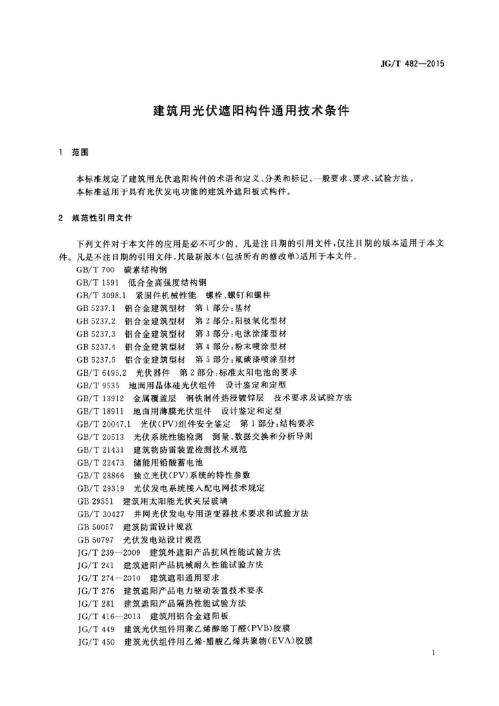 JG/T 482-2015 建筑用光伏遮阳构件通用技术条件