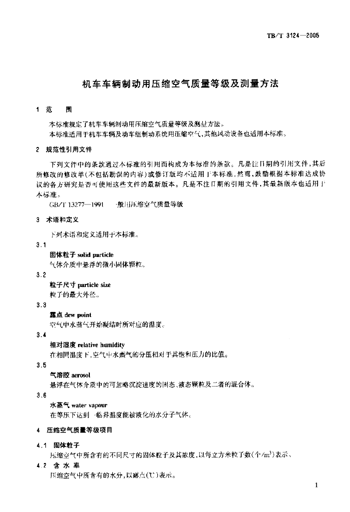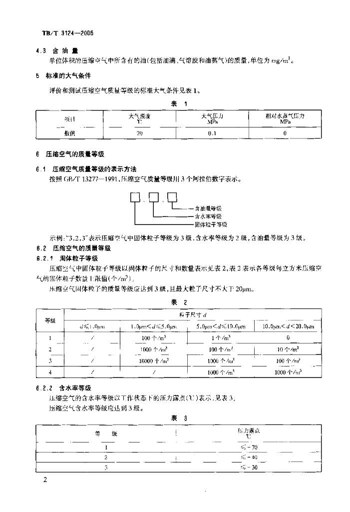 TB/T 3124-2005 机车车辆制动用压缩空气质量等级及测量方法