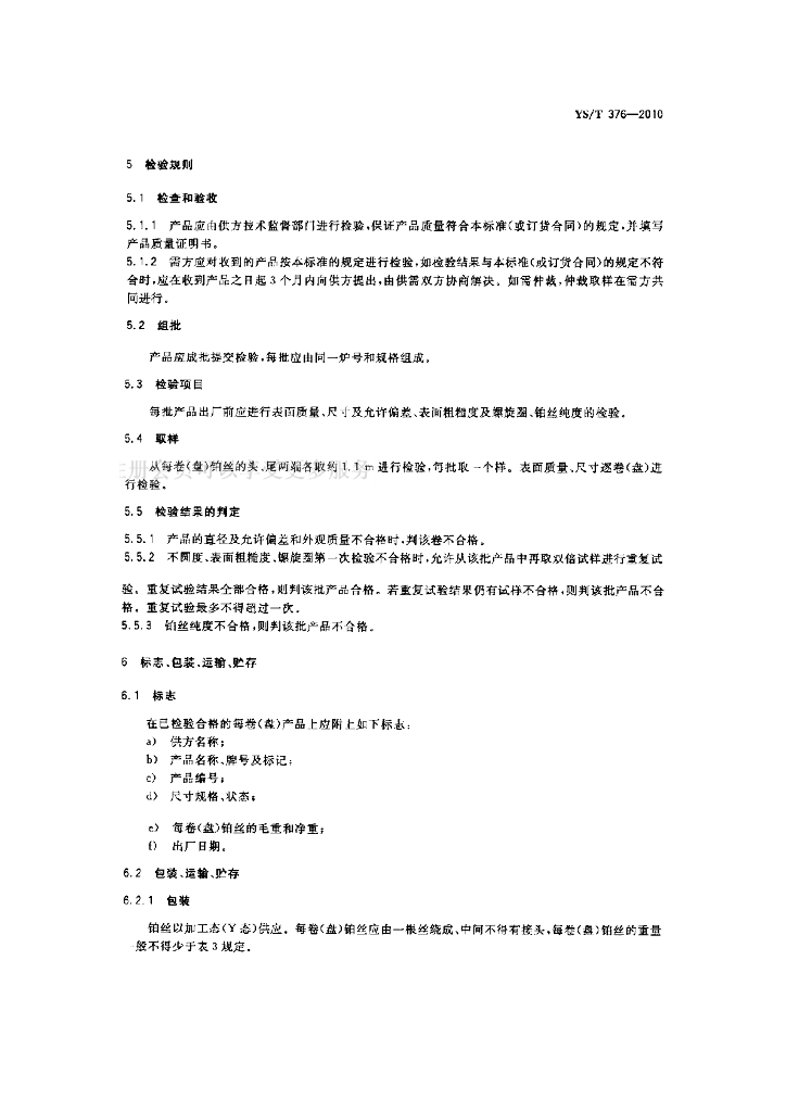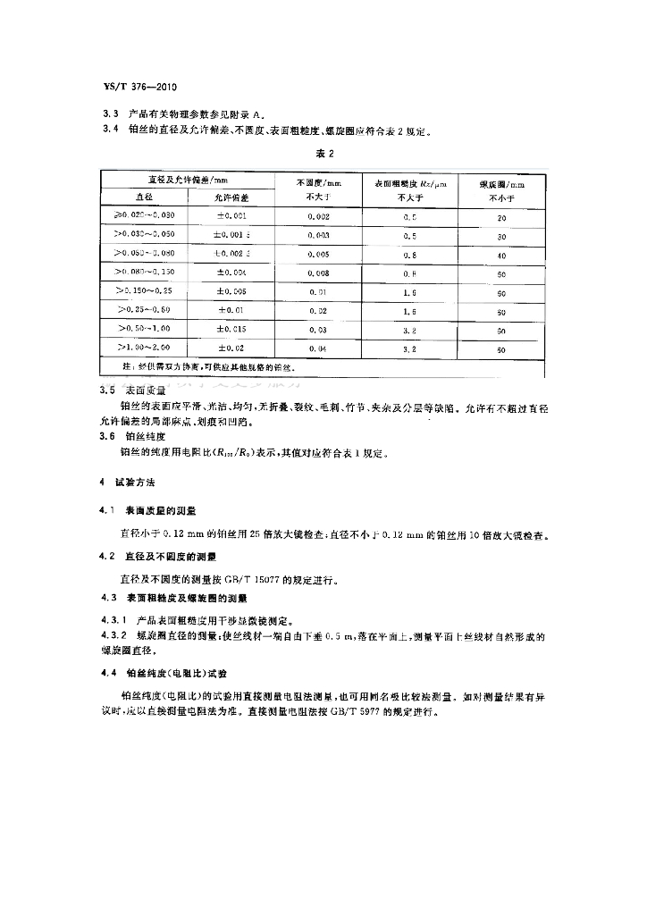 YS/T 376-2010 物理纯铂丝