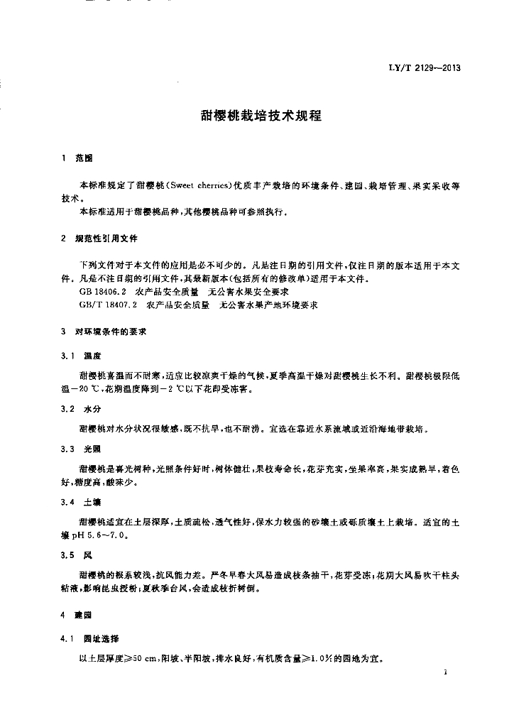 LY/T 2129-2013 甜樱桃栽培技术规程
