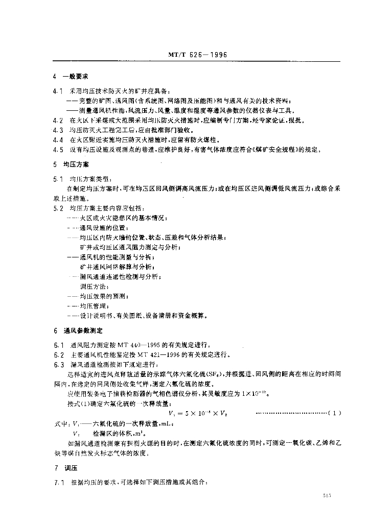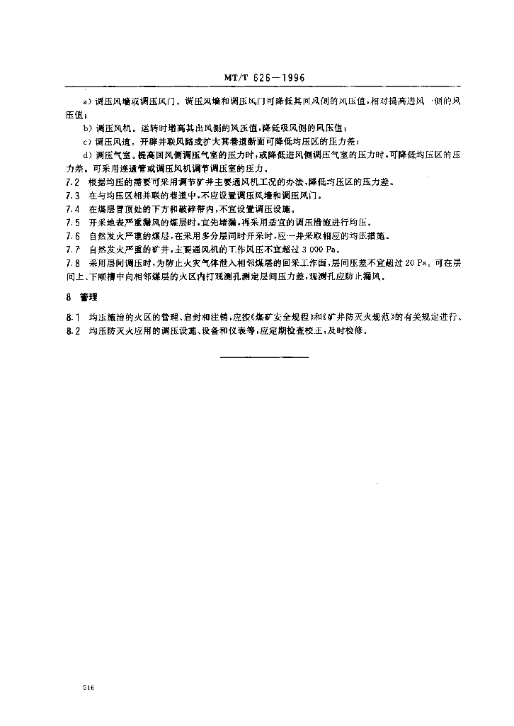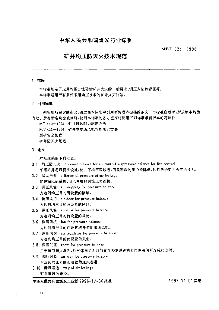 MT/T 626-1996 矿井均压防灭火技术规范