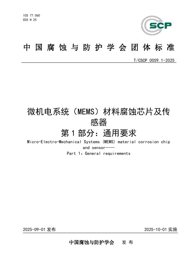 T/CSCP 0059.1-2025 微机电系统(MEMS)材料腐蚀芯片与传感器 第1部分:通用要求