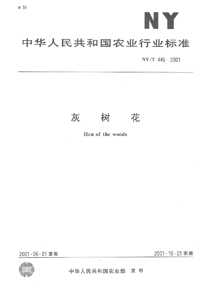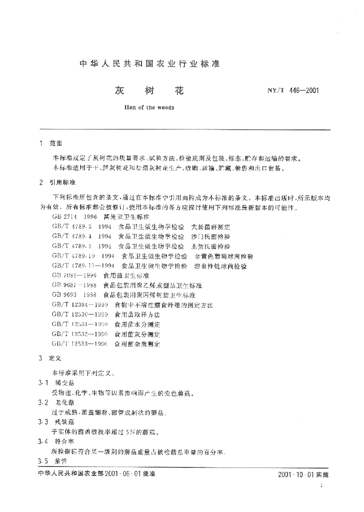 NY/T 446-2001 灰树花