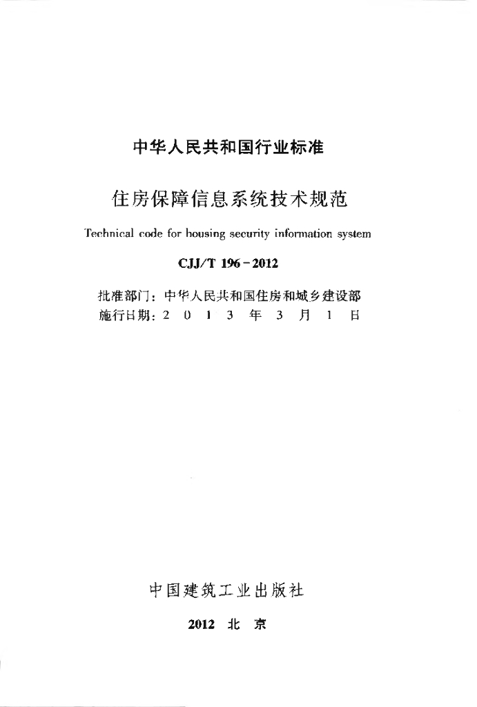 CJJ/T 196-2013 住房保障信息系统技术规范