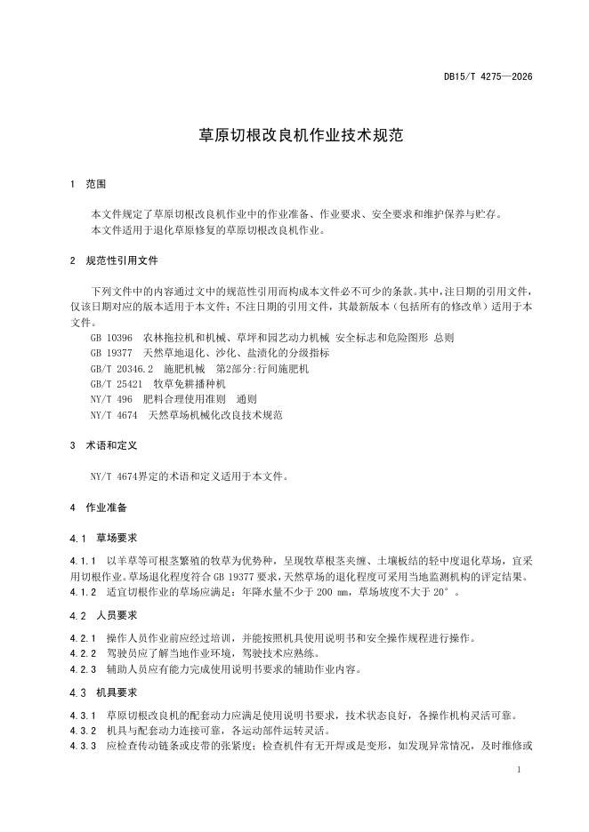 DB15/T 4275-2026 草原切根改良机作业技术规范