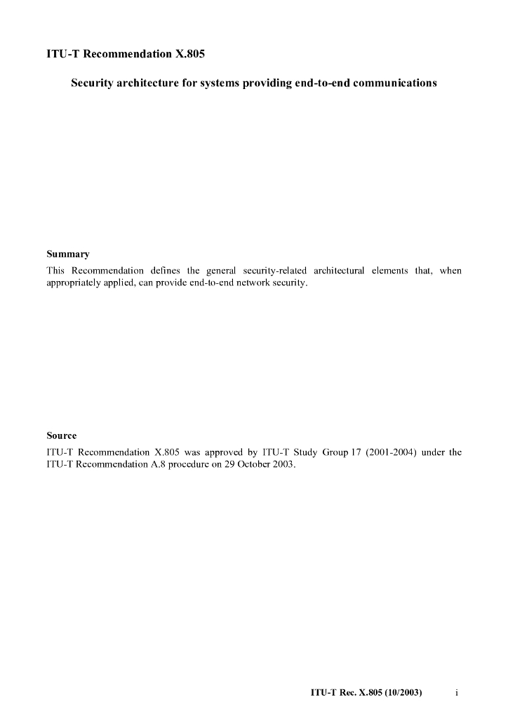 ITU-T X.805-2003 提供端到端通信的系统的安全体系结构