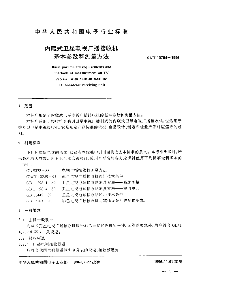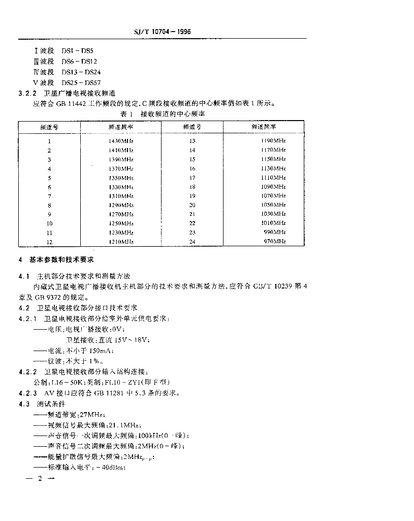 SJ/T 10704-1996 内藏式卫星电视广播接收机基本参数和测量方法