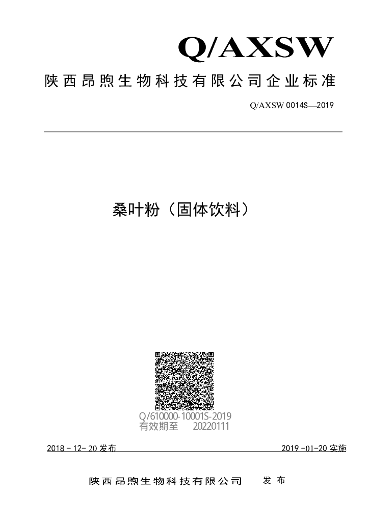 Q/AXSW 0014S-2019 桑叶粉(固体饮料)