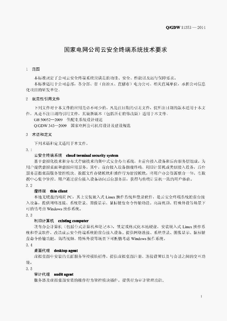 Q/GDW 11353-2014 国家电网公司云安全终端系统技术要求