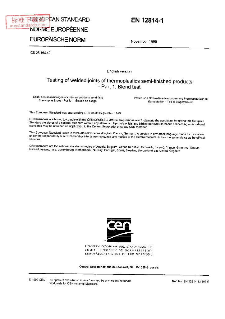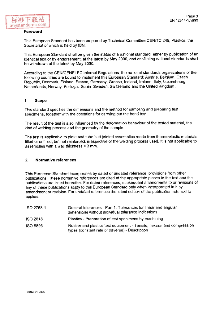 BS EN 12814-1-2000 热塑性半成品焊接接头试验.弯曲试验