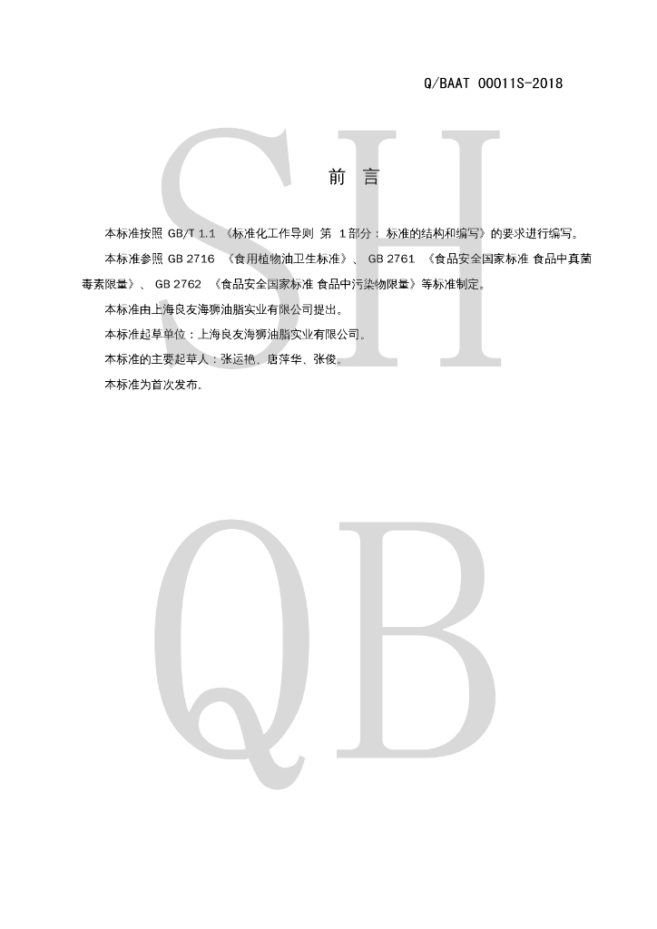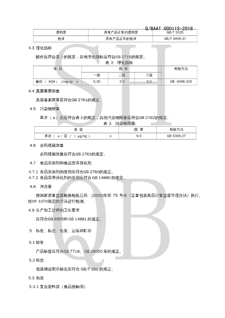 Q/BAAT 00011S-2018 葵花籽油