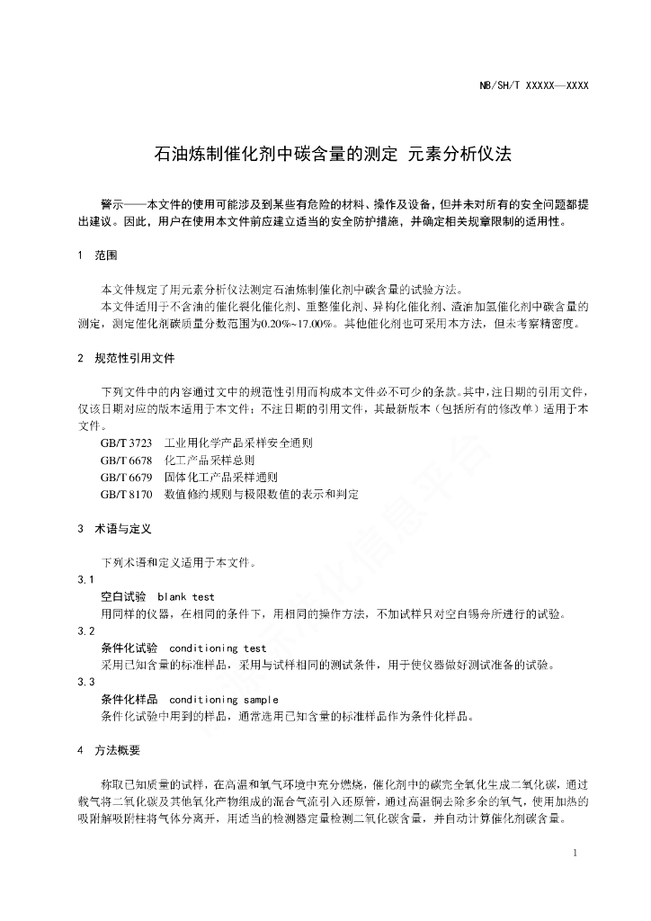 NB/SH/T 6067-2022 石油炼制催化剂中碳含量的测定 元素分析仪法