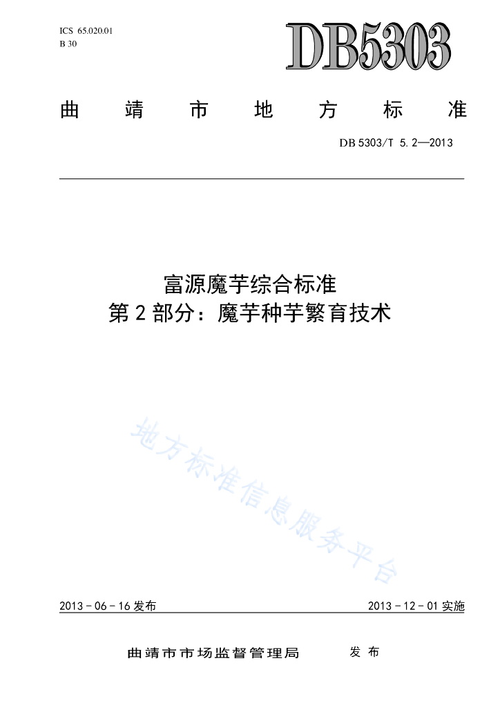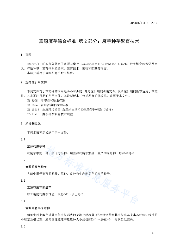 DB5303/T 5.2-2013 富源魔芋综合标准 第2部分:魔芋种芋繁育技术