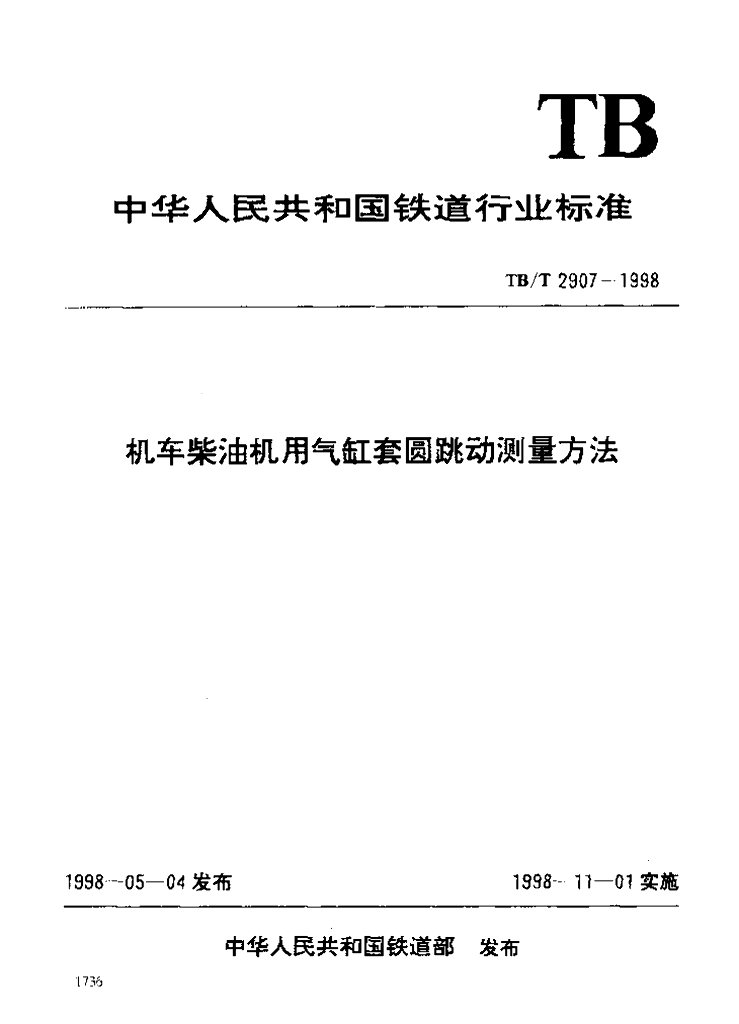 TB/T 2907-1998 机车柴油机用气缸套圆跳动测量方法