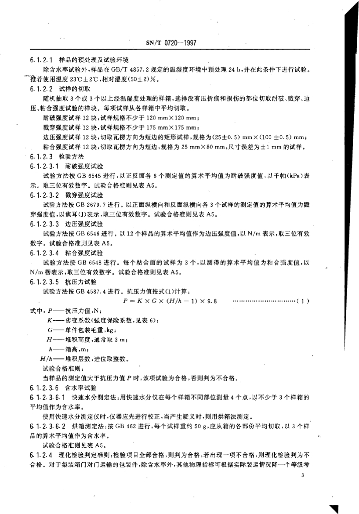 SN/T 0720-1997 出口鞋帽、文体用品类商品运输包装检验规程