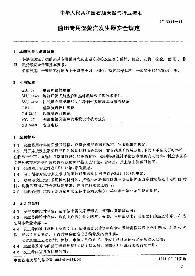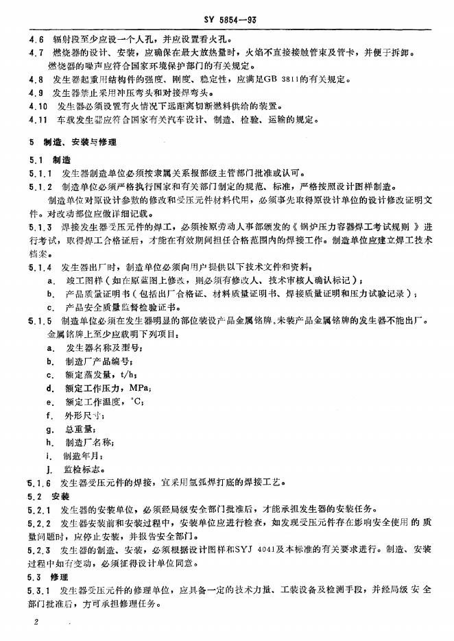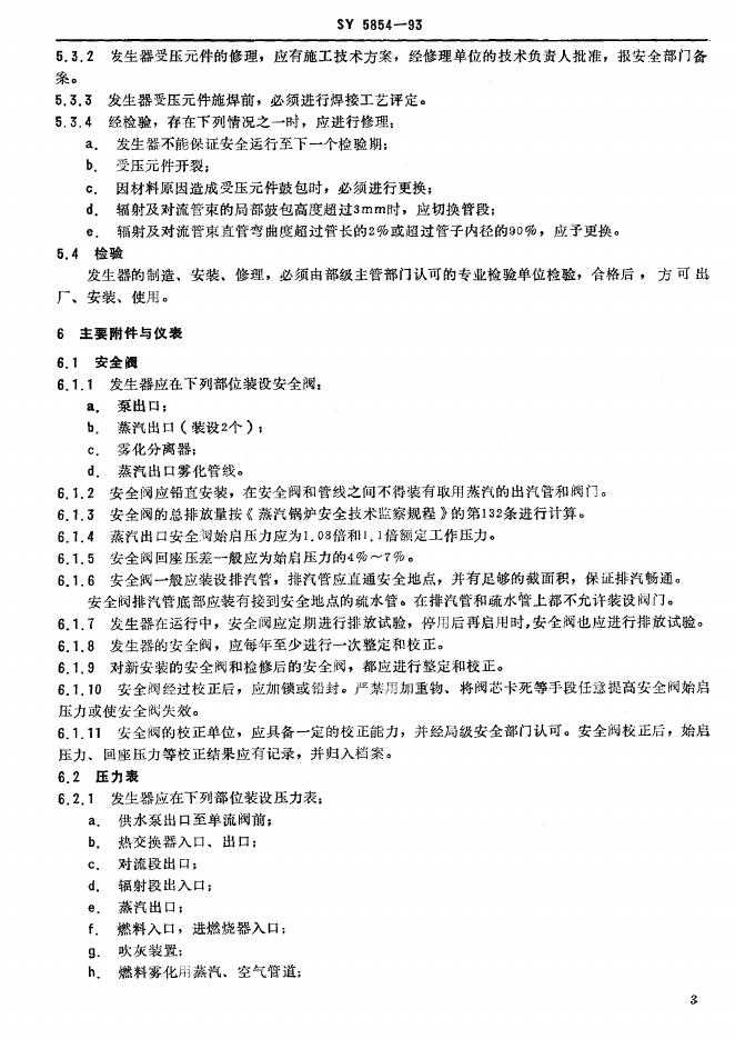 SY 5854-1993 油田专用湿蒸汽发生器安全规定
