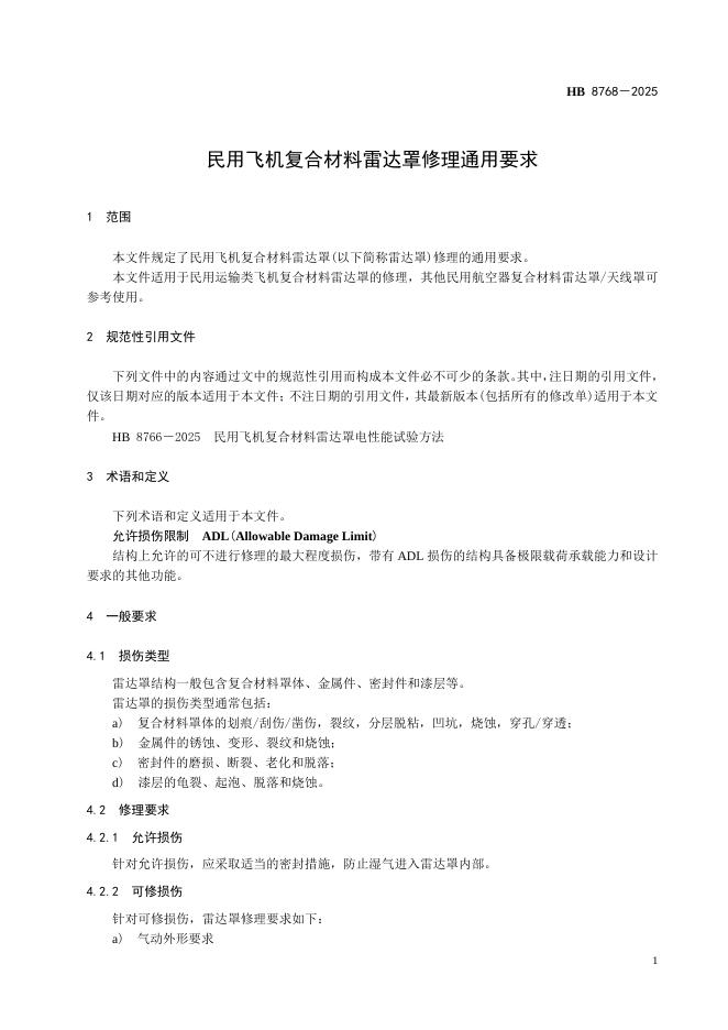 HB 8768-2025 民用飞机复合材料雷达罩修理通用要求