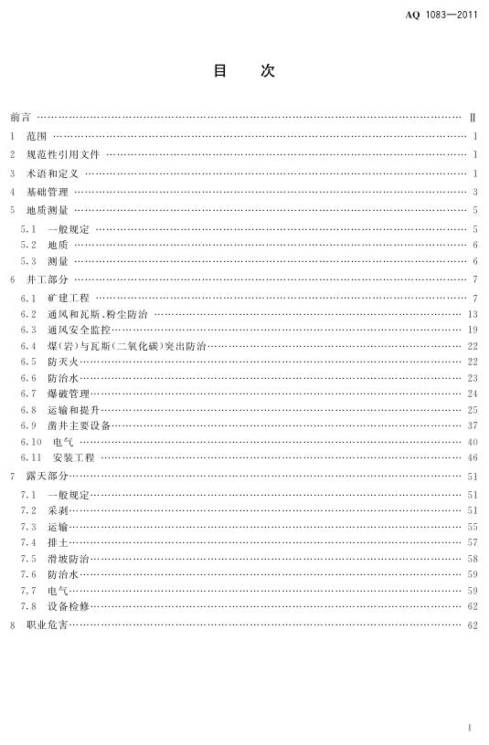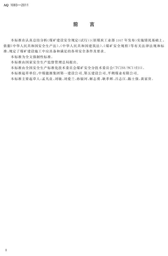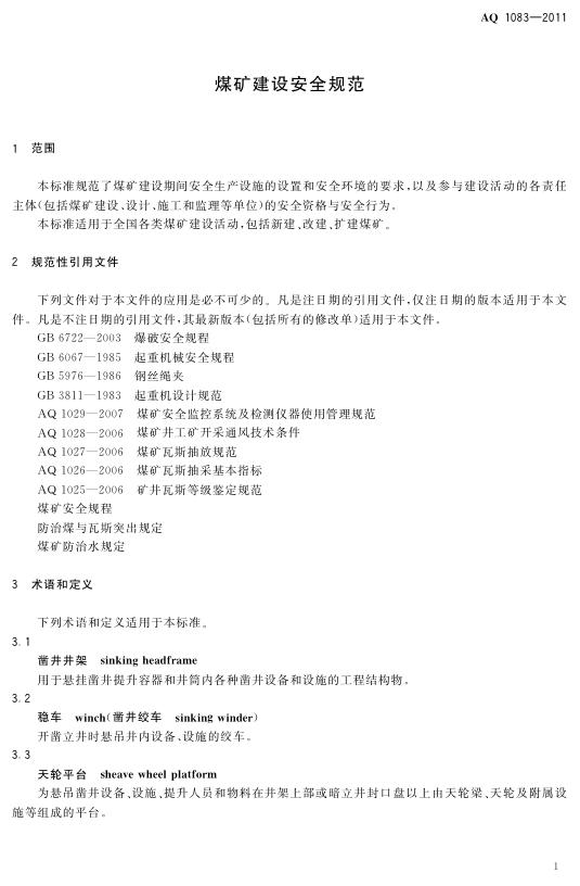 AQ 1083-2011 煤矿建设安全规范