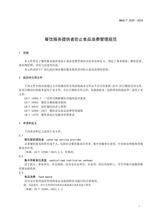DB45/T 2929-2024 餐饮服务提供者防止食品浪费管理规范
