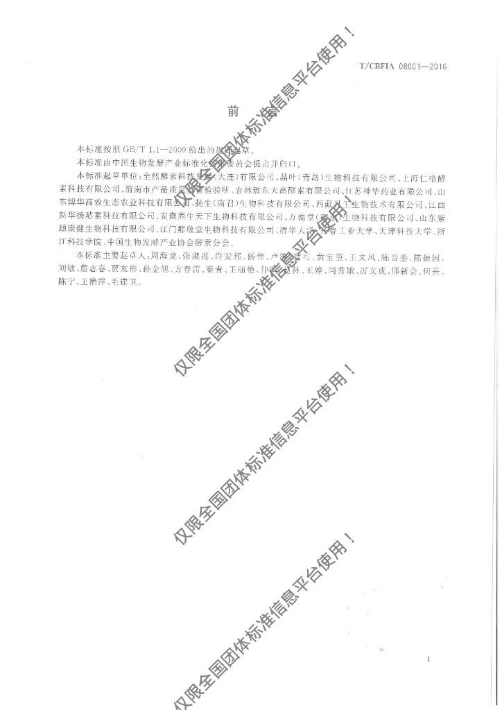全然酵素科技发展(大连)有限公司、晶叶(青岛)生物科技有限公司、上海仁格酵素科技有限公司、渭南市产品质量监督检验所、吉林敖东大高酵素有限公司、江苏神华药业有限公司、山东博华高效生态农业科技有限公司、扬生(南召)生物科技有限公司、西藏月王生物技术有限公司、江西新华扬酵素科技有限公司、安徽养生天下生物科技有限公司、万德堂(衡水)生物科技有限公司、山东紫颐康健生物科技有限公司、江门酵敬堂生物科技有限公司、清华大学、齐鲁工业大学、天津科技大学、浙江科技学院、中国生物发酵产业协会酵素分会