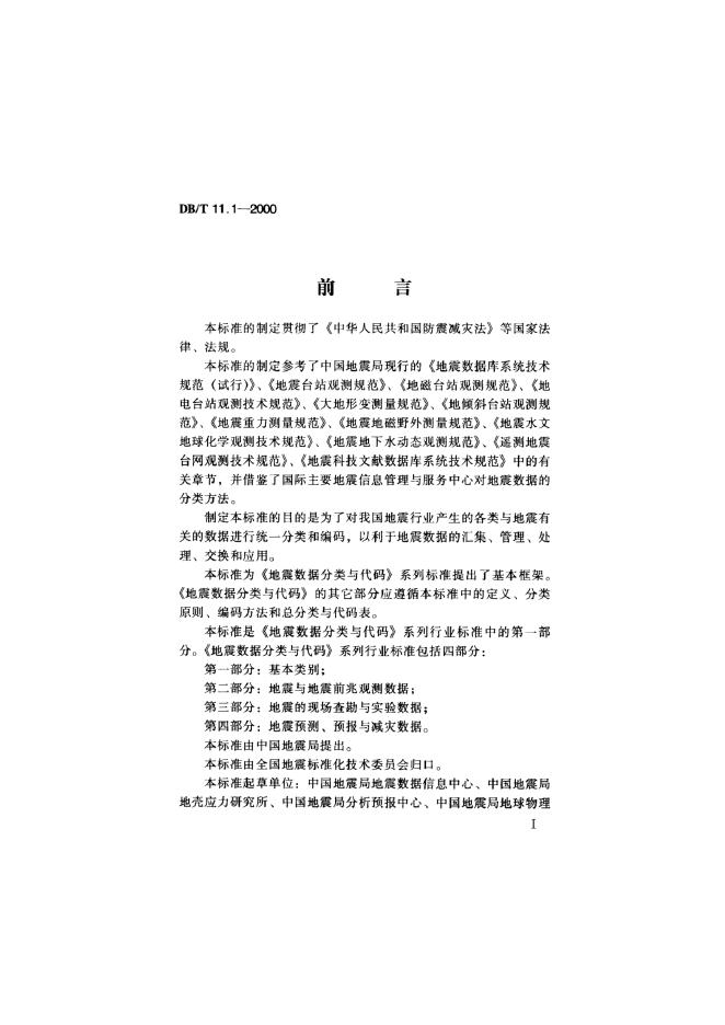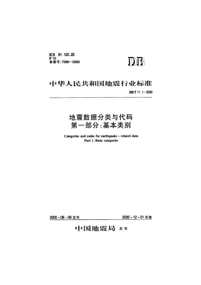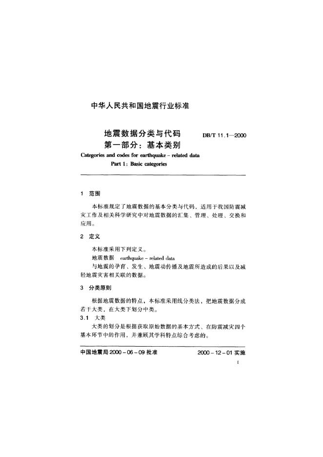 DB/T 11.1-2000 地震数据分类与代码 第一部分:基本类别
