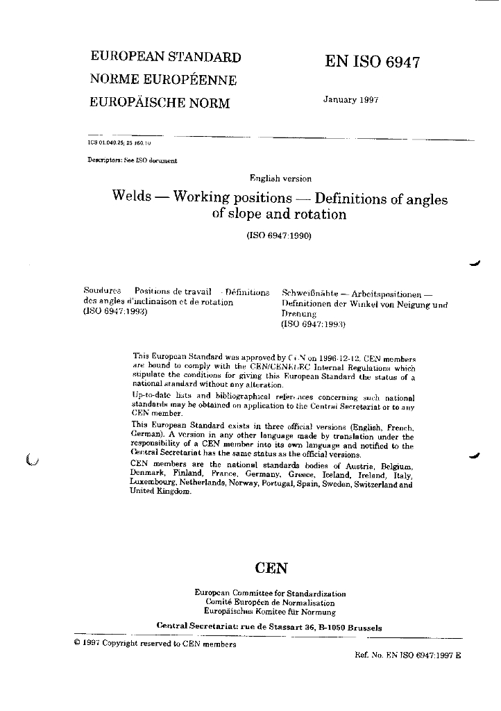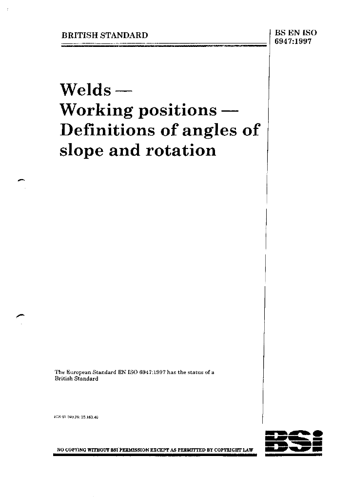 BS EN ISO 6947-1997 welds-working positions-Definitions of angless of slope and rotation