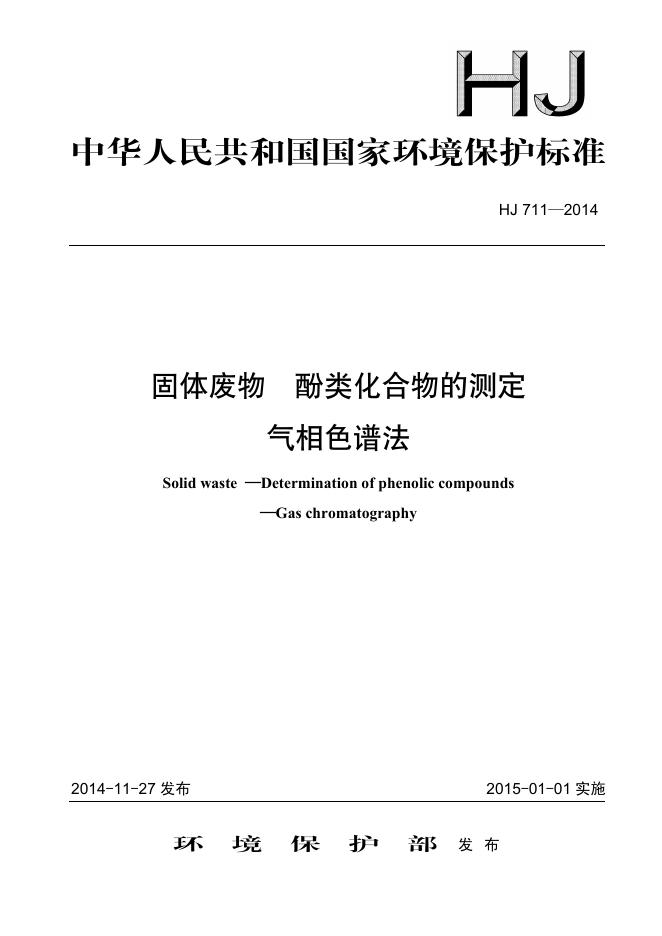 HJ 711-2014 固体废物 酚类化合物的测定 气相色谱法