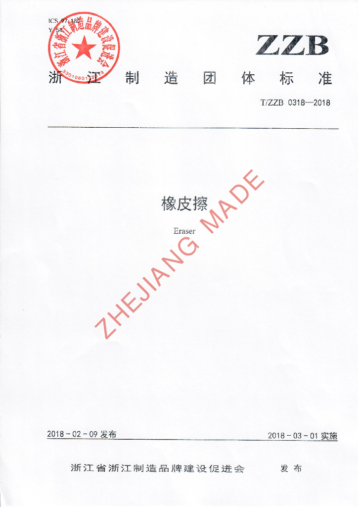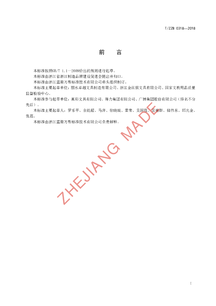 丽水卓越文具制造有限公司、浙江金丝猴文具有限公司、国家文教用品质量监督检验中心、真彩文具有限公司、得力集团有限公司、广博集团股份有限公司